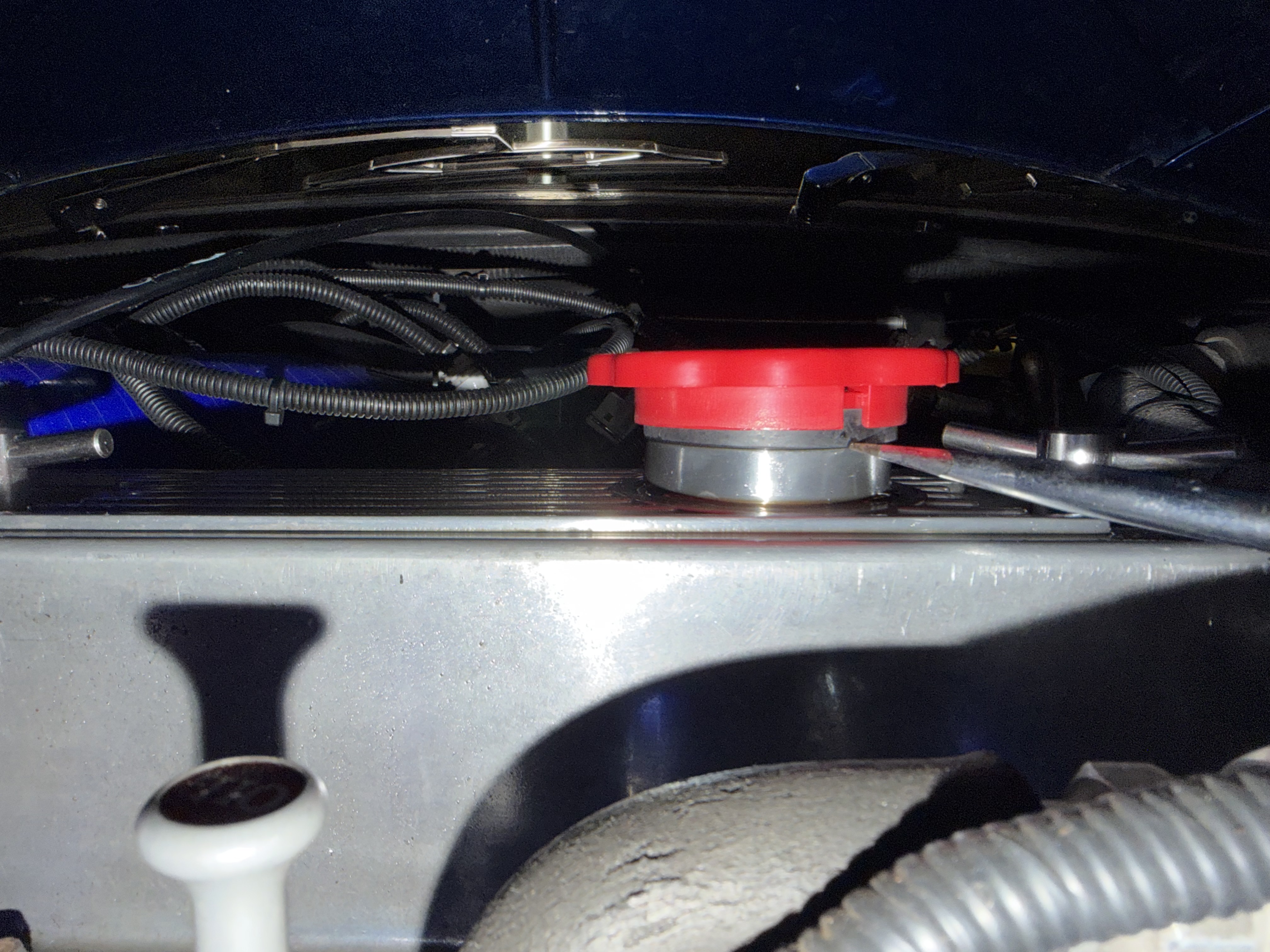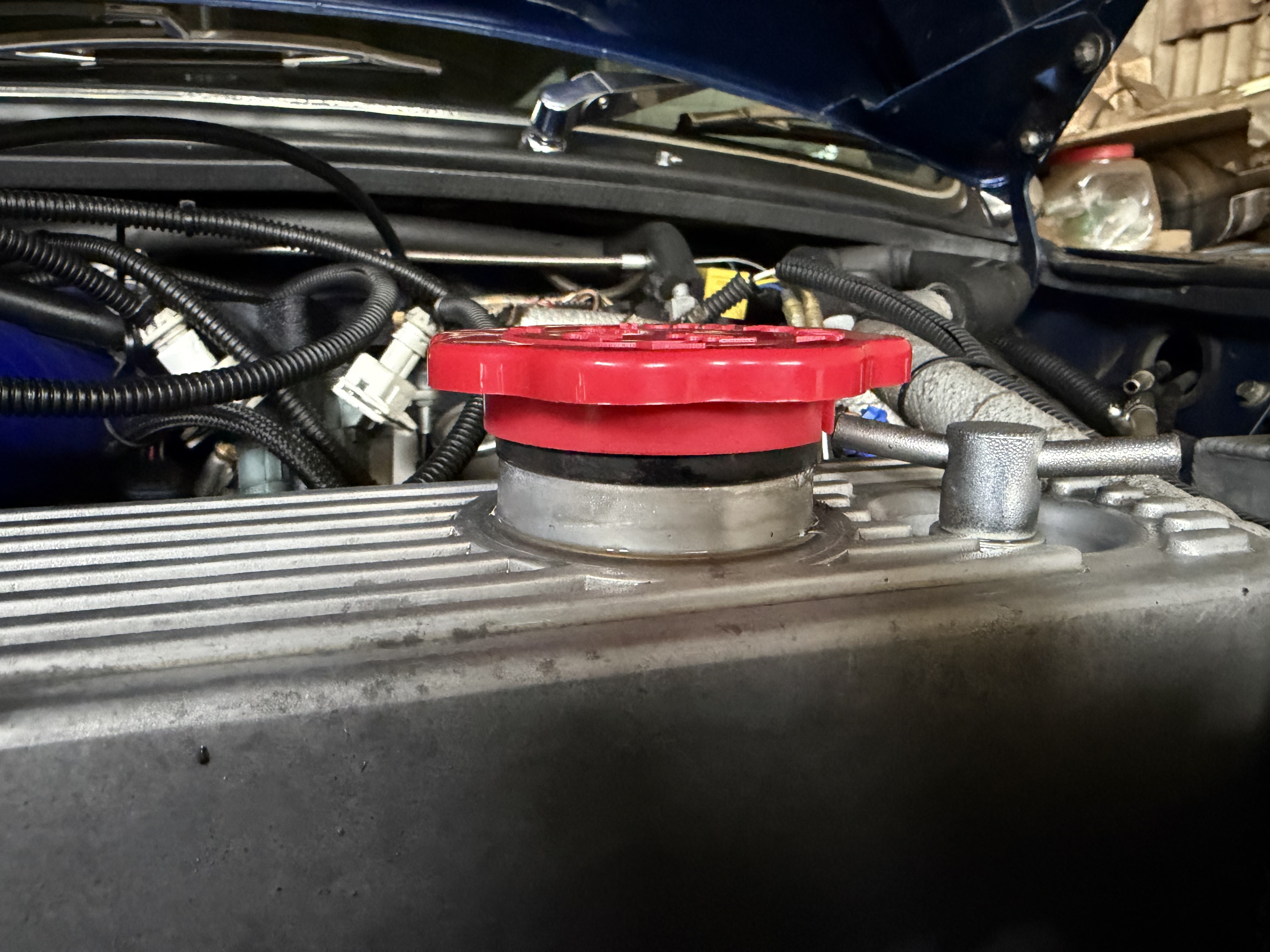 これまで使っていたミニのロッカーカバー用オイルフィラーキャップは、漏れるようでロッカーカバーの上面にオイルが溜まることが多かったので、キャップを交換してみた。