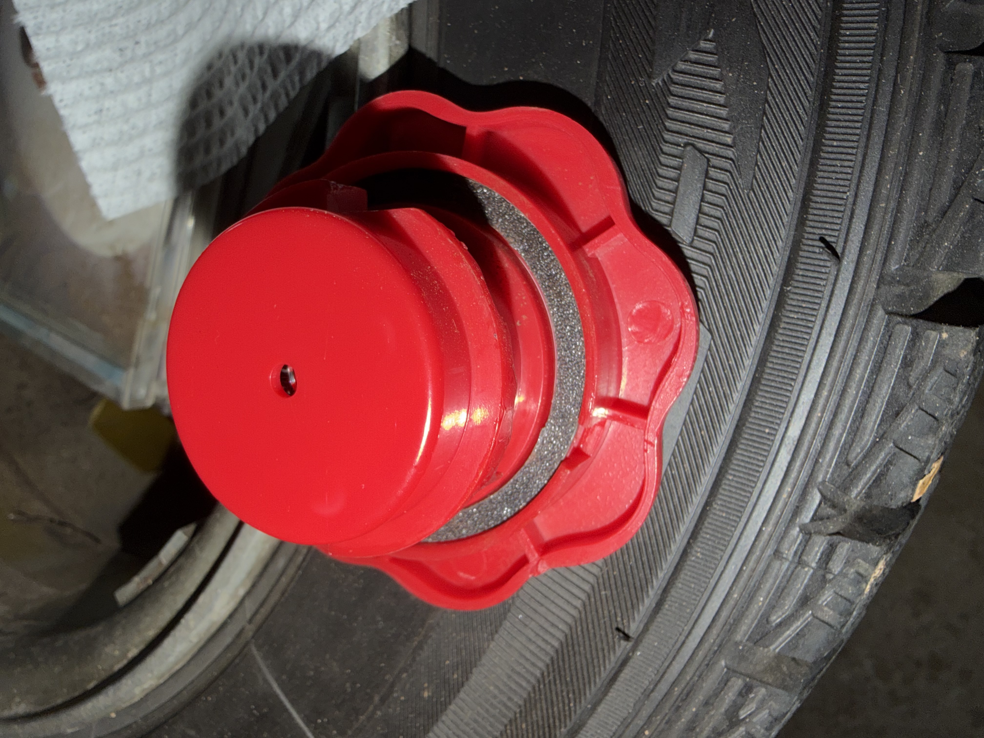 何で隙間を埋めたらいいか。最初は板ゴムをサークルカッターで切って埋めようと思っていたが、どれくらい隙間があるのかわからないのと、サークルカッターが500円くらいするのでちょっとコストが合わない。