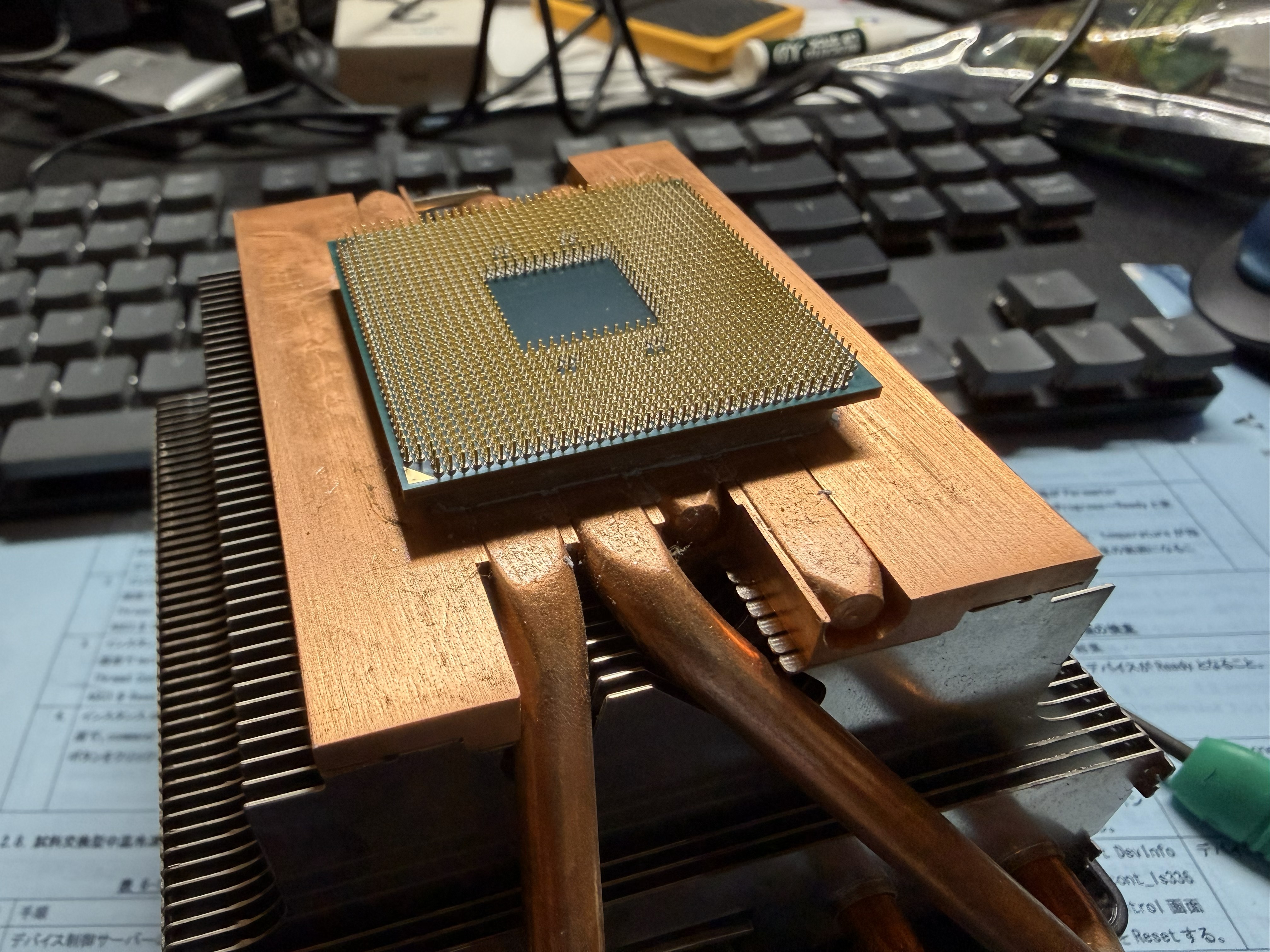これまでNASとして使ってきたPCを解体すべく、メモリを外してmemtest86+にかけて問題なし。つづいて、CPUクーラーを外…CPUごと外れちゃったよ…。
