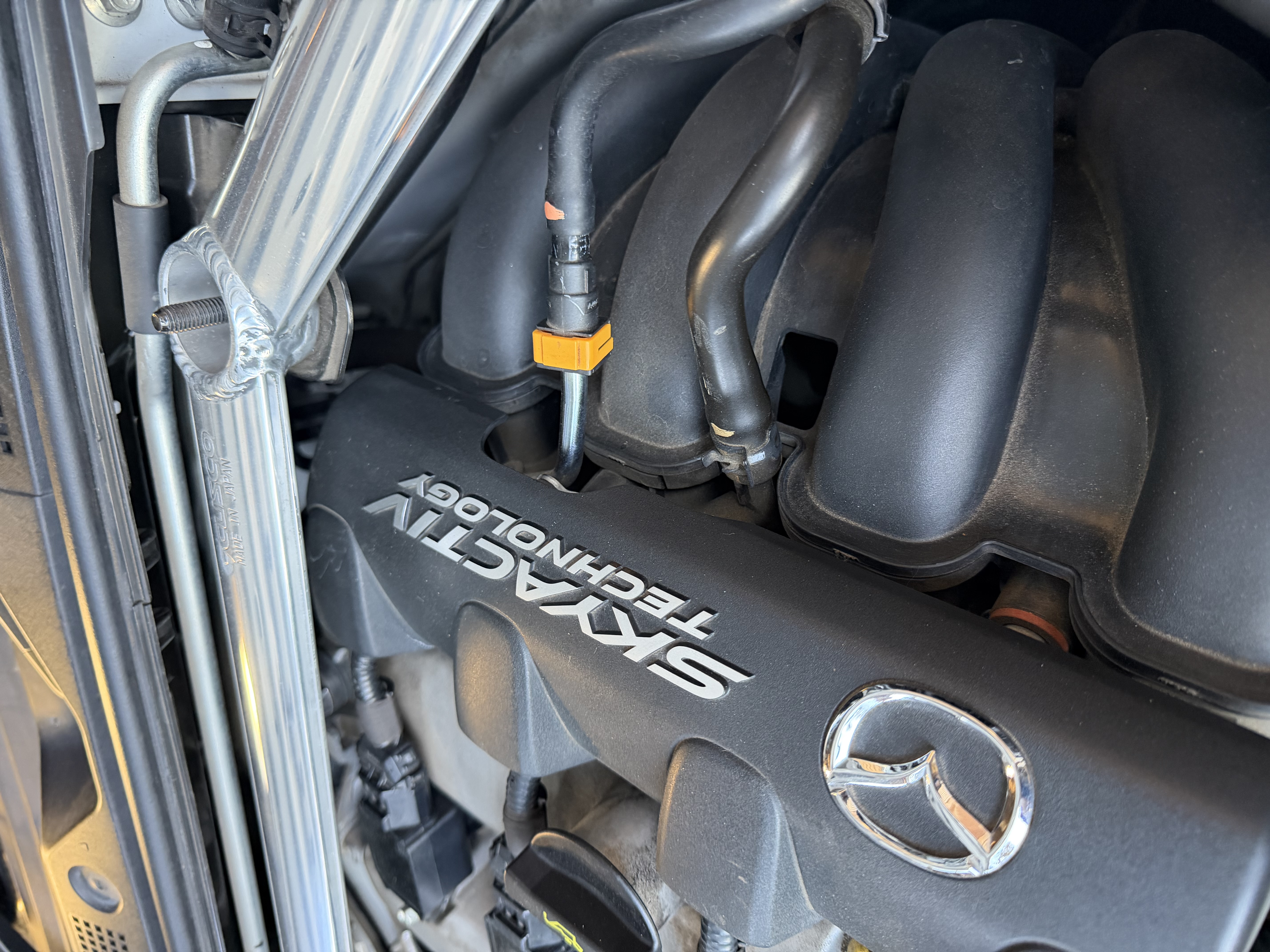 試乗から戻ってしばらくすると、修理が終わった。最近は、洗車はしてくれないみたい。で、交換された燃料パイプというのはこれかなぁ?これ以外見て分かるものはなかったので。